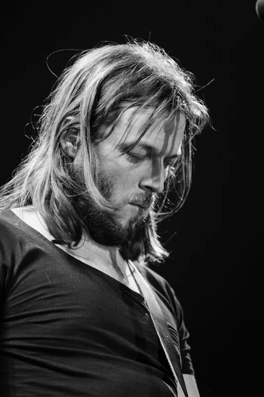 David Gilmour, guitariste et chanteur des Pink Floyd en concert au Pavillon de Paris le 22 février 1977 (Photo by Daniel SIMON/Gamma-Rapho via Getty Images)