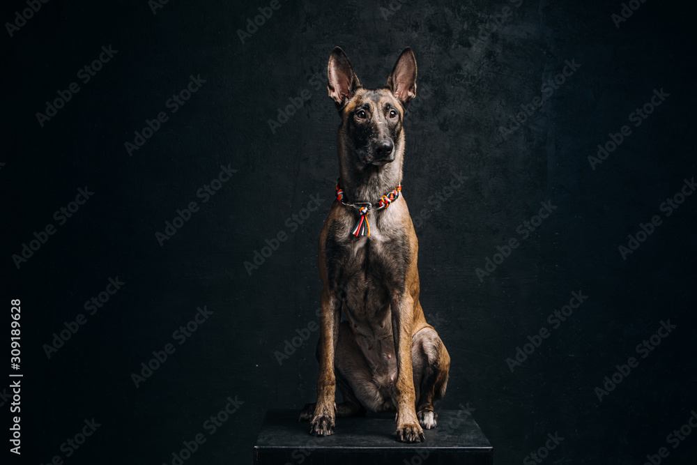 Obraz na płótnie Belgian malinois shepherd dog at the dark background