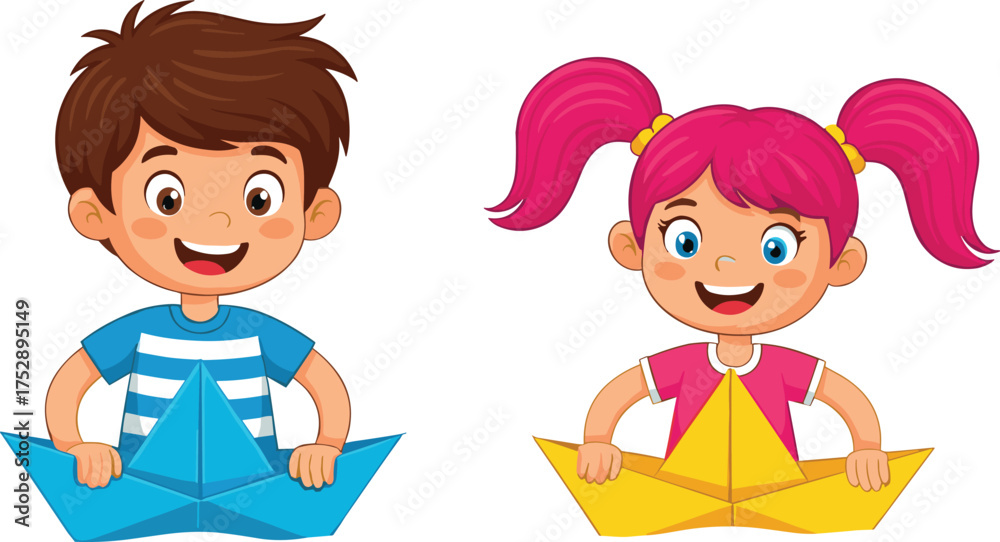 Fotografie children, boat, paper, cartoon, illustration, smile, boy, girl, activity, fun, k