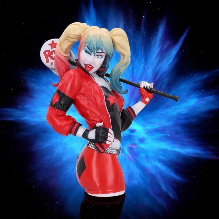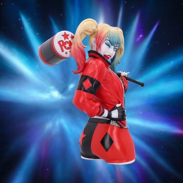 Szczegółowa figurka kolekcjonerska Harley Quinn o wysokości około 30 cm. Wykonana z wysokiej jakości żywicy, ręcznie malowana, oficjalnie licencjonowany produkt DC Comics – idealny dodatek dla fanów Gotham i kolekcjonerów postaci z komiksów.