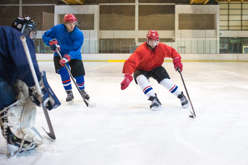 Fotografie Ice hockey players playing ice hockey in the ice rink in winter