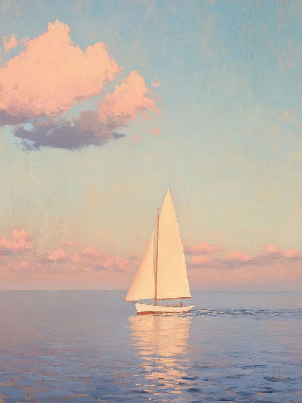 Obraz na płótnie Pastel Colors in Abstract Oil Painting, Sailboat at Sunset
