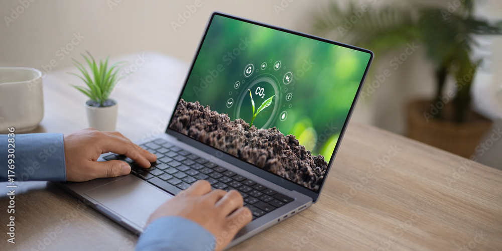 Naklejka Businessmen work for CO2 reduction and reforestation.
