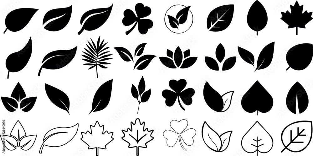 Naklejka Leaf silhouettes, vector collection, diverse leaves shapes, nature elements