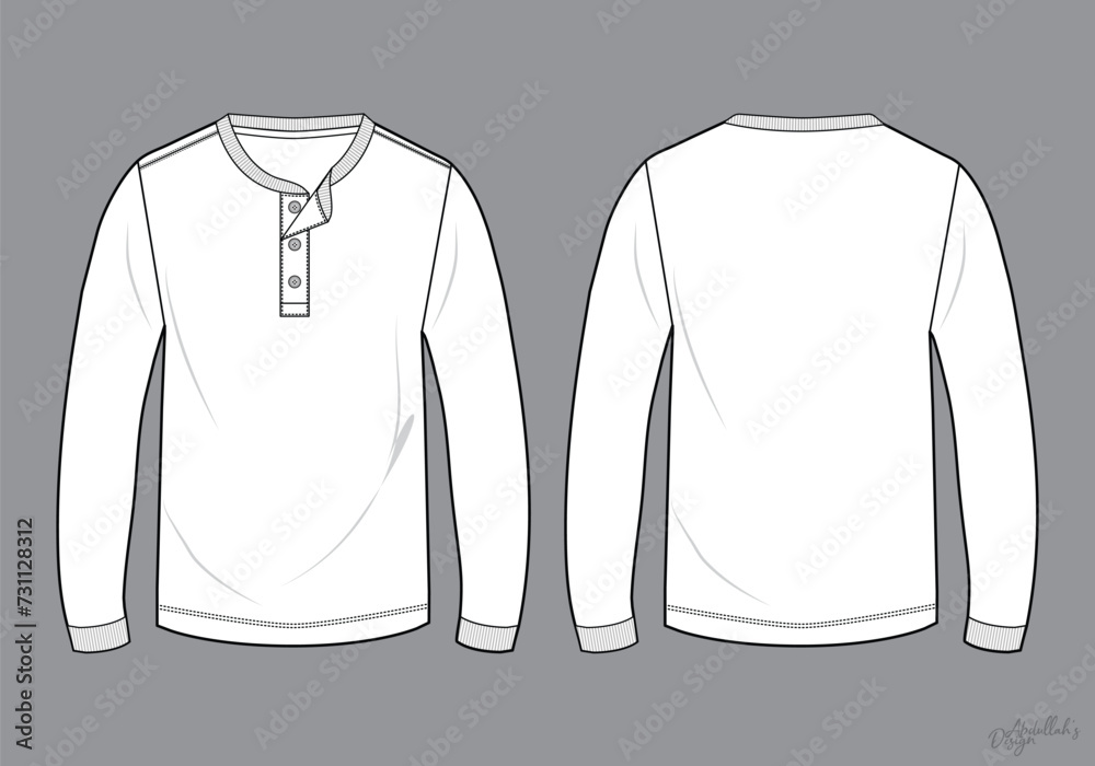 Naklejka Men's Casual Henley neck long sleeve t shirt with rib cuff fashion flat sketch v