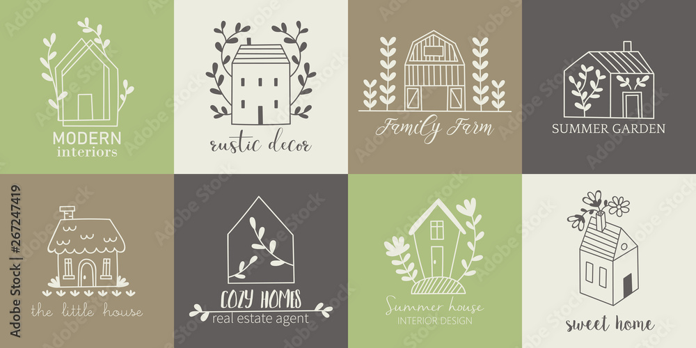 Obraz na płótnie House, home, cottage and farm logo template with hand drawing icons